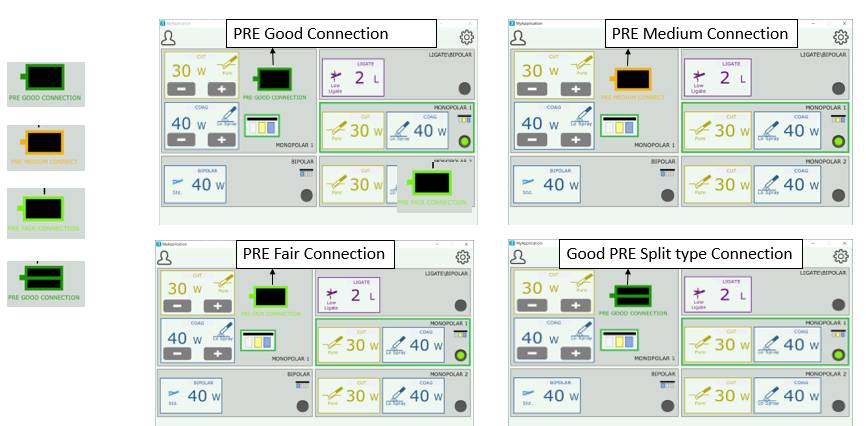 Patient Return Electrode Contact Quality Monitoring (PRE-CQM) monitors the contact quality of the return electrode in real-time. It establishes a baseline and uses it as a reference to monitor the contact area. If the contact area reduces, it automatically stops the energy delivery and gives an error message along with an audible alarm.